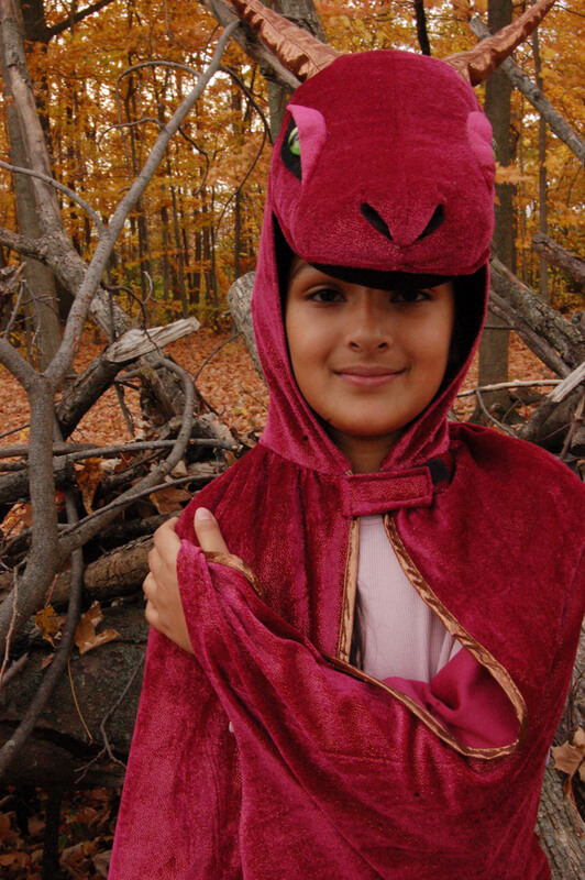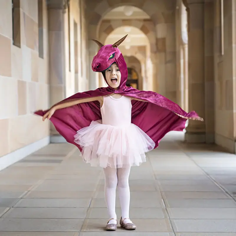 This gorgeous cape is fearless with its spectacular fiery green eyes, dramatic copper spikes and horns, and stuffed head with great design details. This cape will get your little one ready for countless hours of exciting playtime and fantasy-filled adventures. Crafted with soft and comfortable fabric.