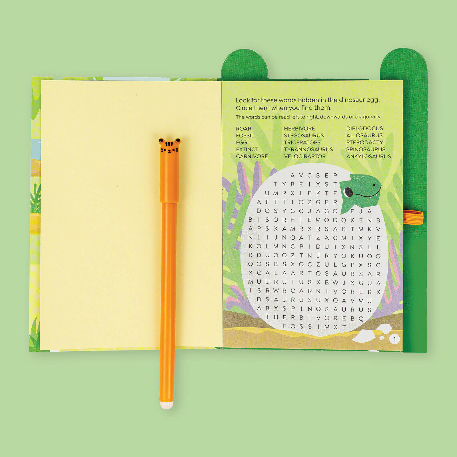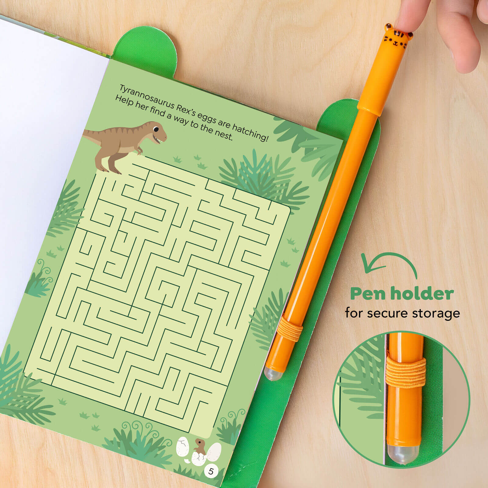 25 pages of dinosaur-themed puzzles, mazes, word games and more