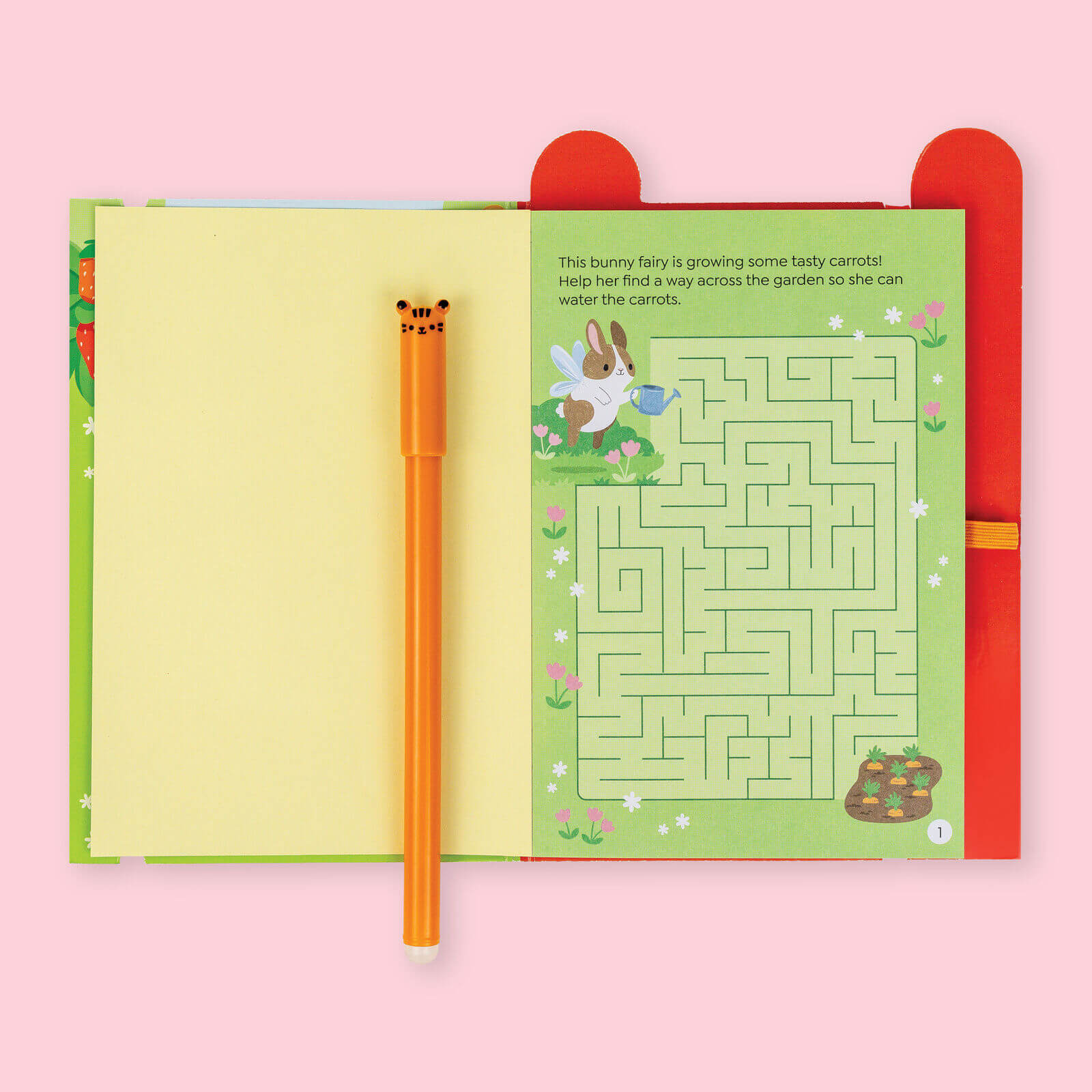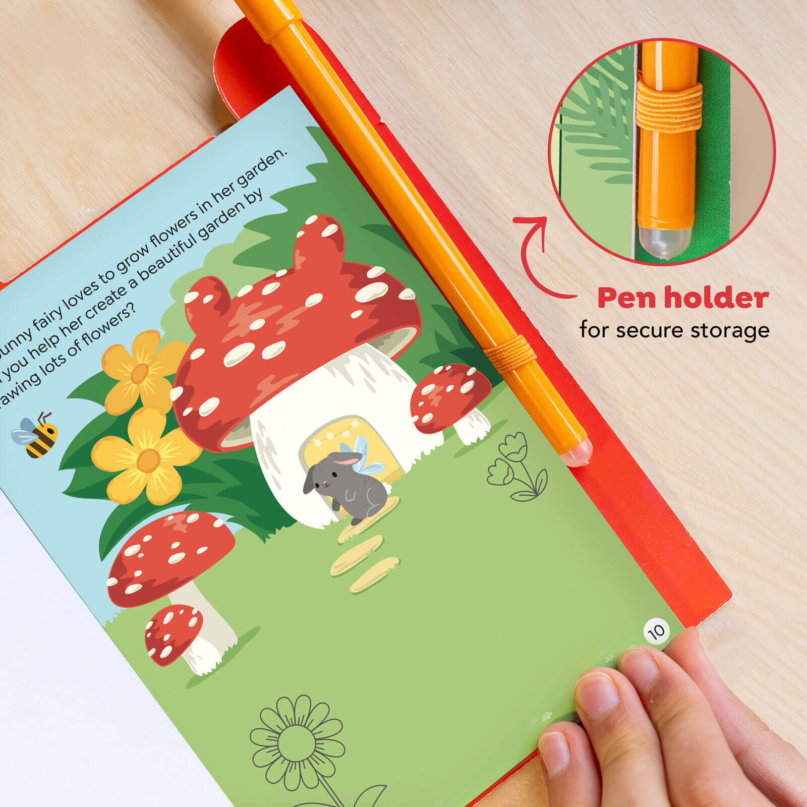 Includes: 25 activity pages, 5 solution pages, 1 erasable pen, 1 sticker sheet, storytelling scene inside cover