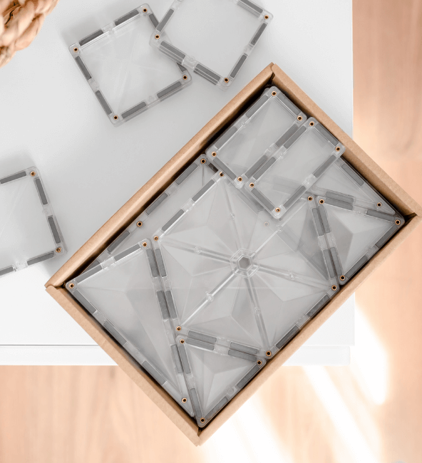 As an open-ended quality toy, Connetix will grow WITH children as they learn and their play becomes more complex. Complement this Clear Starter Pack with our Clear Base Plate Pack and Rainbow Mega Pack to take your Connetix creations to the next level.