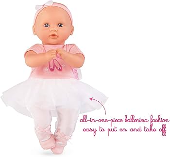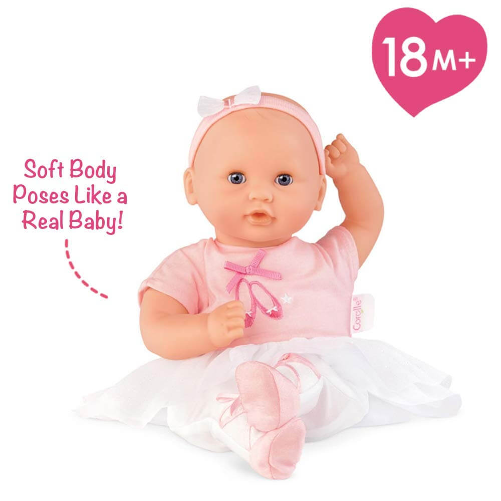 Calin Ballerina is the ideal first baby doll for the littlest kiddos. The adorable 30cm baby doll is just the right size to cradle in a young child’s arms. She has a cuddly soft beanbag body, so she can be posed like a real baby, and supple vinyl skin that is delicately scented with vanilla. Dressed in a lovely pink tutu and ballet slippers, Bebe Calin Ballerina is ready to pirouette into little girl’s hearts!