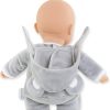 Its sewn-on outfit is not removable and is made of several different fabrics to stimulate baby’s senses. The hood with cute little koala ears can be taken off but stays attached to the body by means of a tab at the back of the doll’s. Sweet Heart Koala has a sewn-in label with space to write a child’s name or a parent’s telephone number; just in case the doll is lost or misplaced! Fixed eyes. Hand washable.