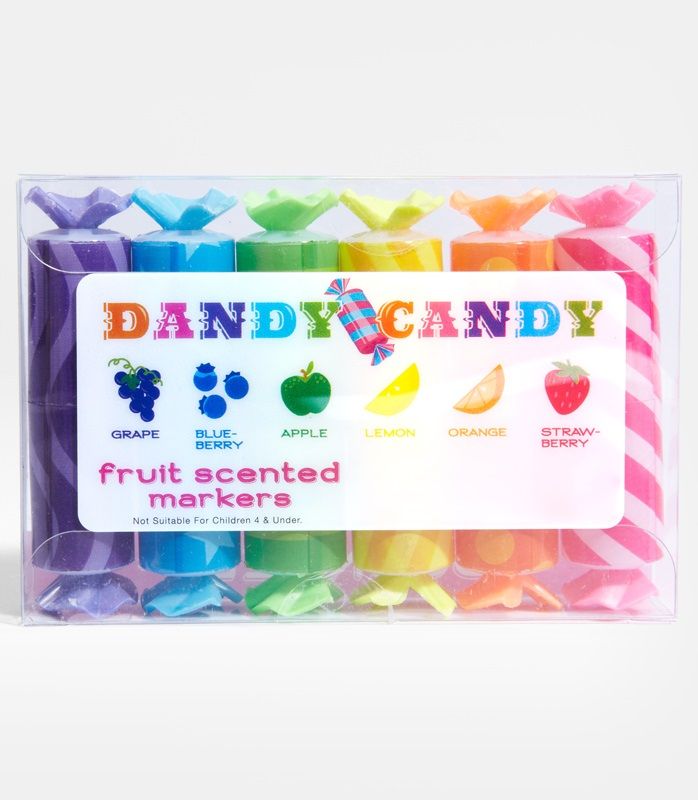 With a finely chiseled tip, you can make fine points or broad strokes of scented marker fun. They come in six fruity scented colours; Grape, Blueberry, Apple, Lemon, Orange and Strawberry.