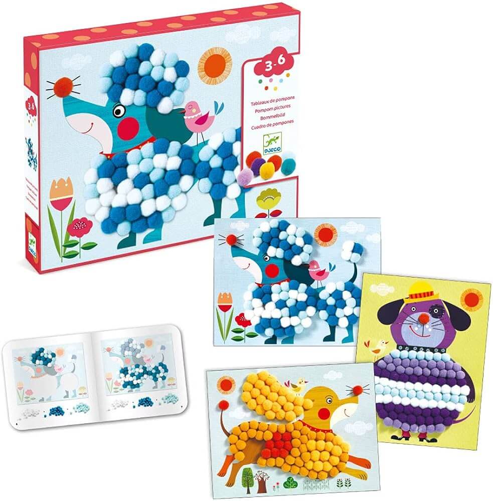 This Djeco Dogs Pompom collage kit is a great little craft activity for younger children. Using the provided craft pompoms, decorate the playful dog pictures by revealing the adhesive surface and pressing on the pompoms. Excellent for building fine motor skills in a fun and creative way.