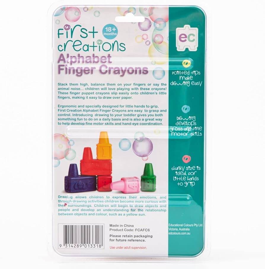 These Alphabet Finger Crayons slip easily onto children’s little fingers and allow them to draw easily over paper. Ergonomic and specially designed for little hands to grip, children will also be able to grasp the crayon and control it easily while they draw with the pointed tip. Each crayon has a different letter, number and image printed onto each side allowing for hours of fun! Encourage & inspire children to be creative through play!