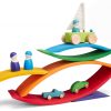 The beautiful Grimm’s Rainbow Bridge is the perfect accompaniment to your Grimm’s Cars, Trucks, and Buses. Comprising six different arcs in strong rainbow colours, they are wonderful pieces to aid in the creation of a marble run. Stack them to create a colourful crazy tower.