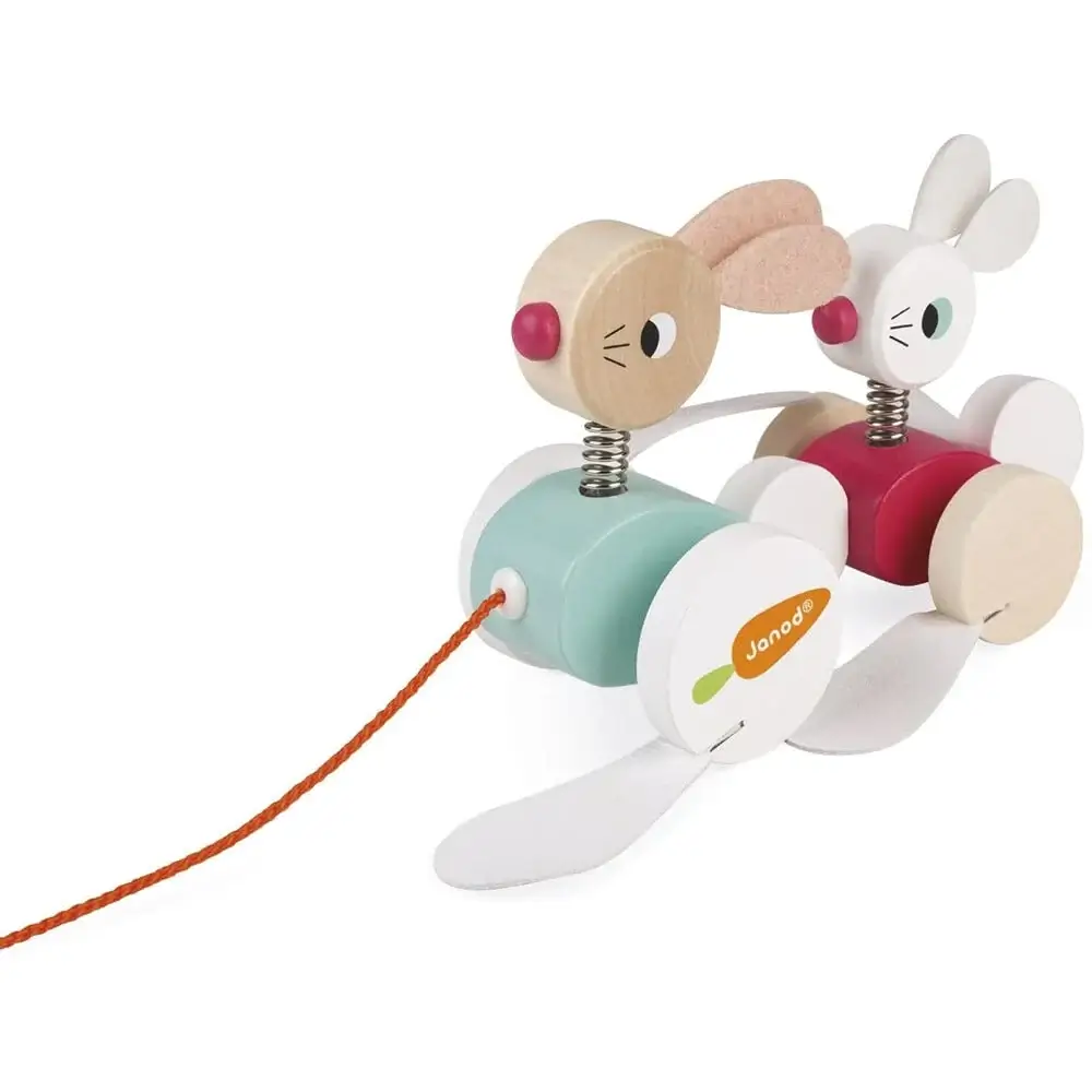 Made from FSC certified beech and cherry wood, the Janod Pull Along Rabbits are a superb early learning toy that will help develop your child’s motor skills and be great companions on many adventures!