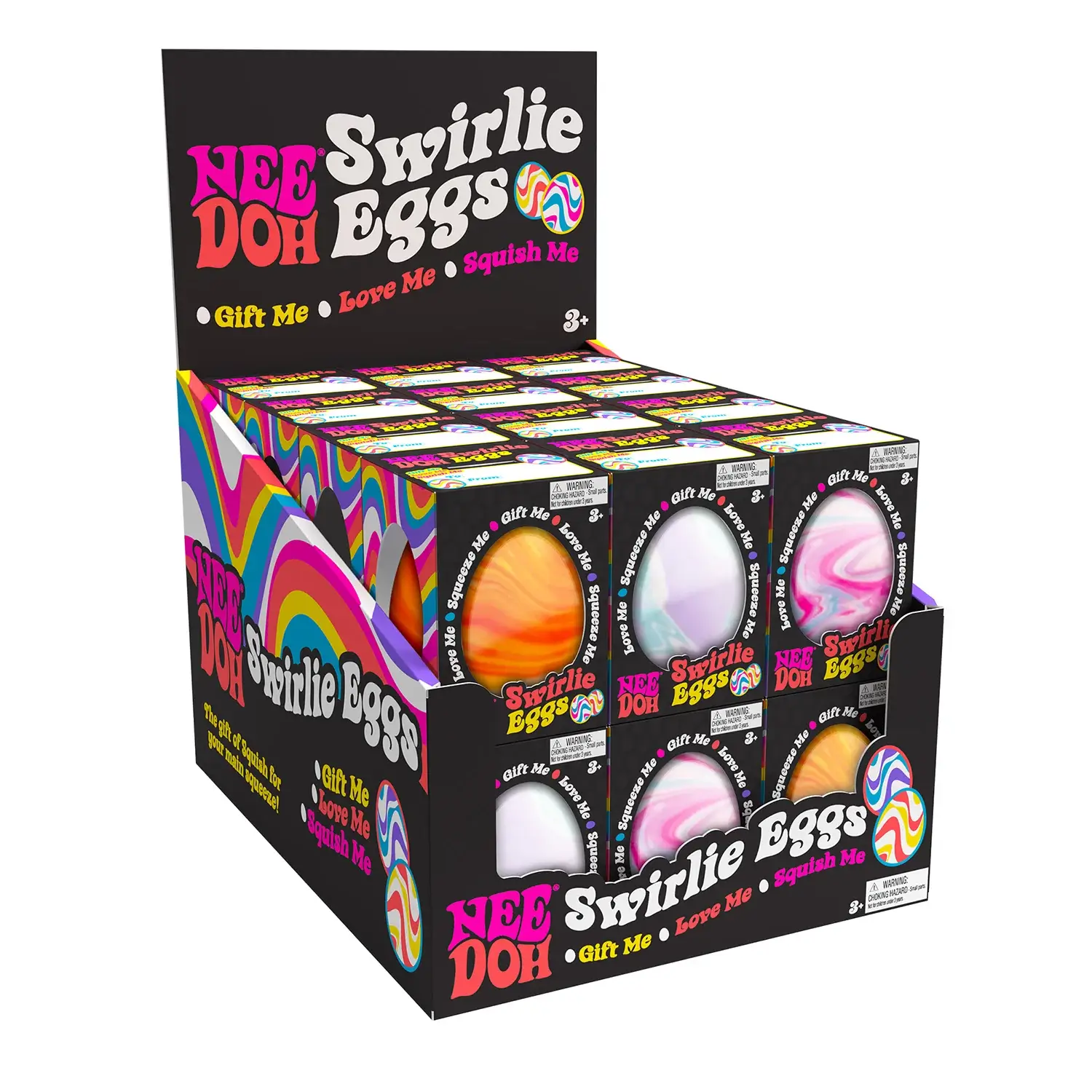 Add some squeezable beauty to Easter with the NeeDoh Swirlie Egg. Filled with a soft dough, this egg-shaped groovy glob will help you find some chill this spring!