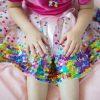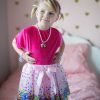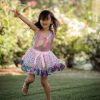 Perfect for days of celebration or for dancing around the house. This soft pink skirt is covered in rows of rainbow sequins and finished with a satin bow at the waist.