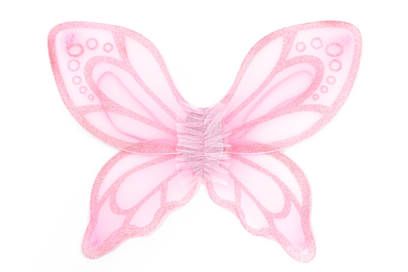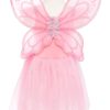 Little ones will fall in love with this stunning butterfly-themed dress. The design features soft pink tulle gathers for a full skirt and an amazing pink sequin top with tulle sleeve accents. Paired with shimmering pink, glitter-printed wings, this two-piece dress wing combo is sure to delight.