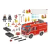 Figures: 2 firemen Accessories: 1 fire engine, 3 storage drawers, 2 flames, 3 water arrow projectiles, 5 hoses, 1 hose winch, 1 hose winch with hose, 4 connectors, 3 suction hoses, 1 suction basket, 1 hydraulic pump, 1 radio, 1 fire extinguisher, 3 pylons, 1 canister, 1 broom, 1 shovel, 1 fire axe, 1 pair of pliers, 1 spreader, 1 jet pipe, 2 firefighter helmets with visor, 1 firefighter’s breastplate, 2 pairs of gloves, 1 carrying frame, 1 breathing apparatus with hose, 1 warning triangle