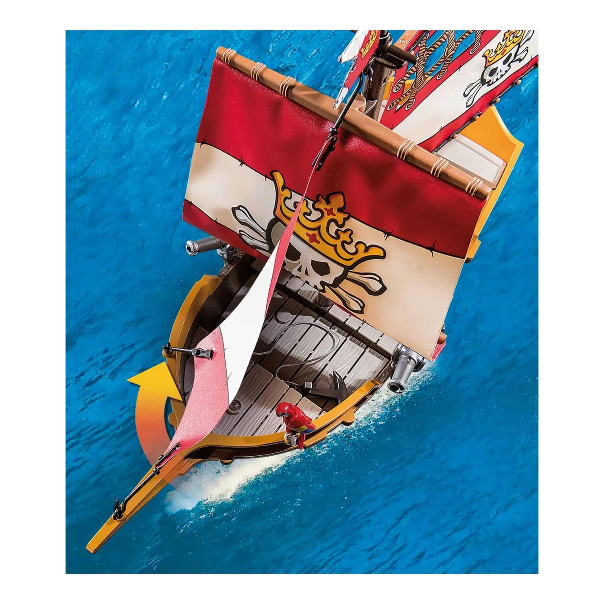 Set sail and embark on an adventure at sea together with sea monster hunter Manta-Hunter Myles and Pirate Queen Rohanna “Ro” Razor-Tide! Exciting pirate adventures await all pirate fans with the Playmobil Pirate Ship. This detailed set includes a pirate ship with movable sails, rotating cannons, two Playmobil figures, a parrot, an anchor, and plenty of other details and cool accessories. Five foot clamps on the deck ensure a secure standing for the figures.
