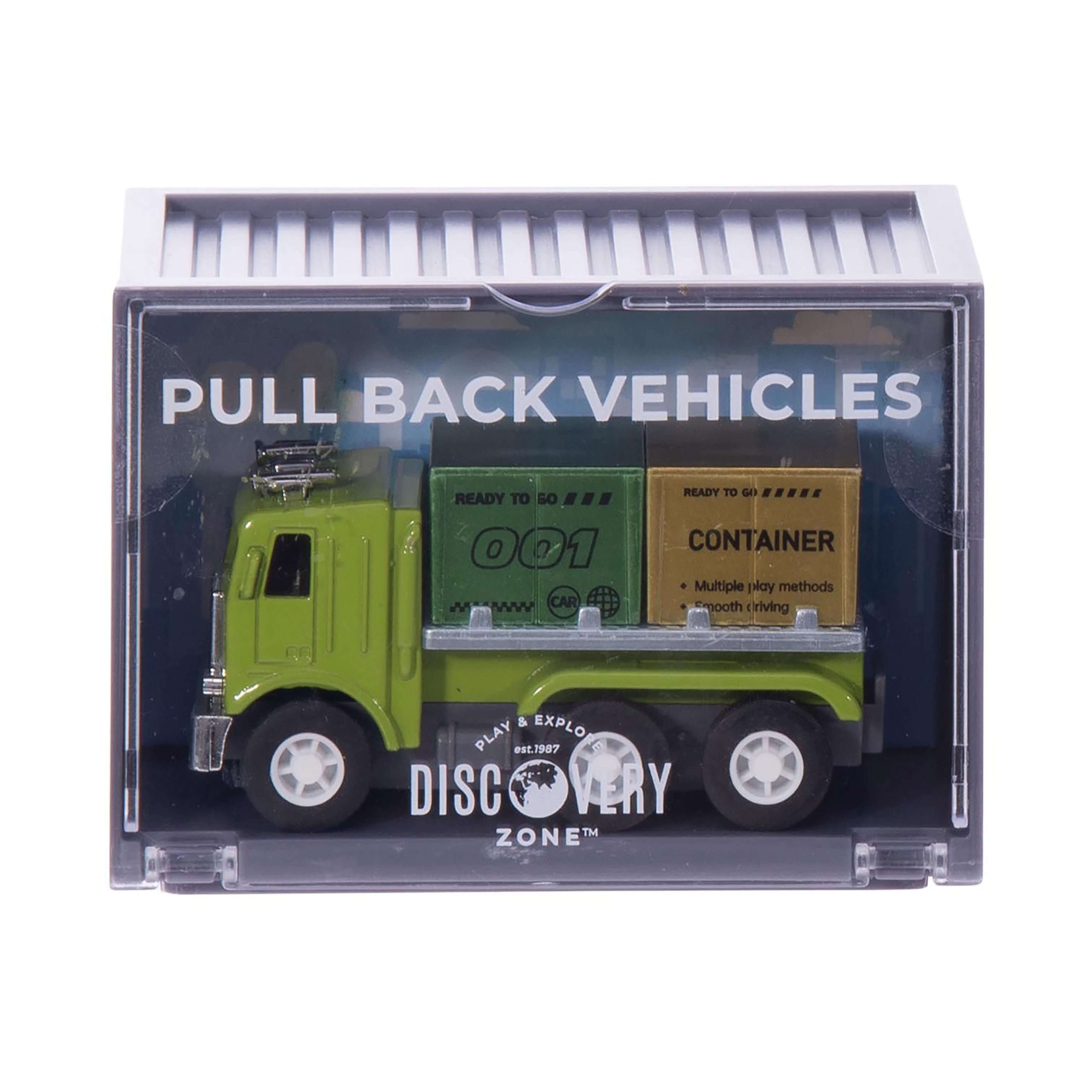 Each truck features a pull back motor, so just pull it back and watch it zoom ahead. The included container doubles as a handy storage box, making it easy to take on the go or keep your collection neat and tidy.
