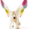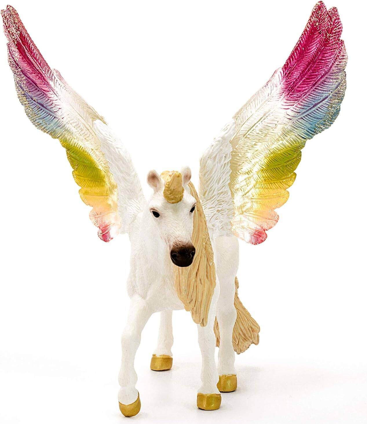 Embark on an enchanting adventure with the Schleich Bayala Winged Unicorn! This majestic toy figurine features rainbow-coloured wings dusted with shimmering gold glitter and a stunning golden horn. Let your imagination soar as you explore the fantastical world of Bayala alongside this graceful and magical creature.