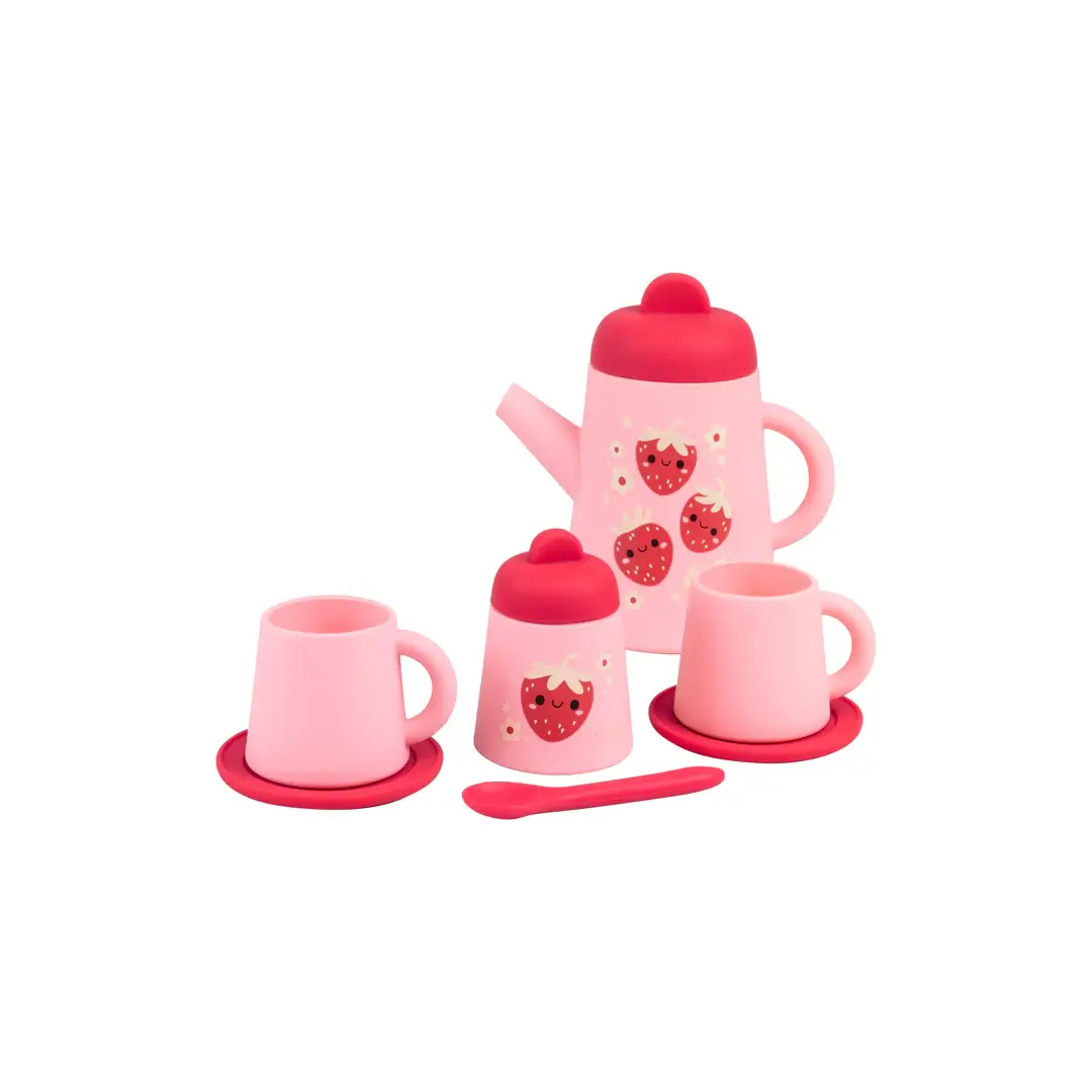 Level-up your little ones pretend play sessions with this sweet Strawberry Patch Silicone Tea Set. This versatile, classic tea set is made of kid-friendly, food-grade silicone that’s perfect for playtime. Great for pretend picnics, tea parties, messy sensory play in the outdoor mud kitchen or for creating bubble-chinos in the tub at bath time.