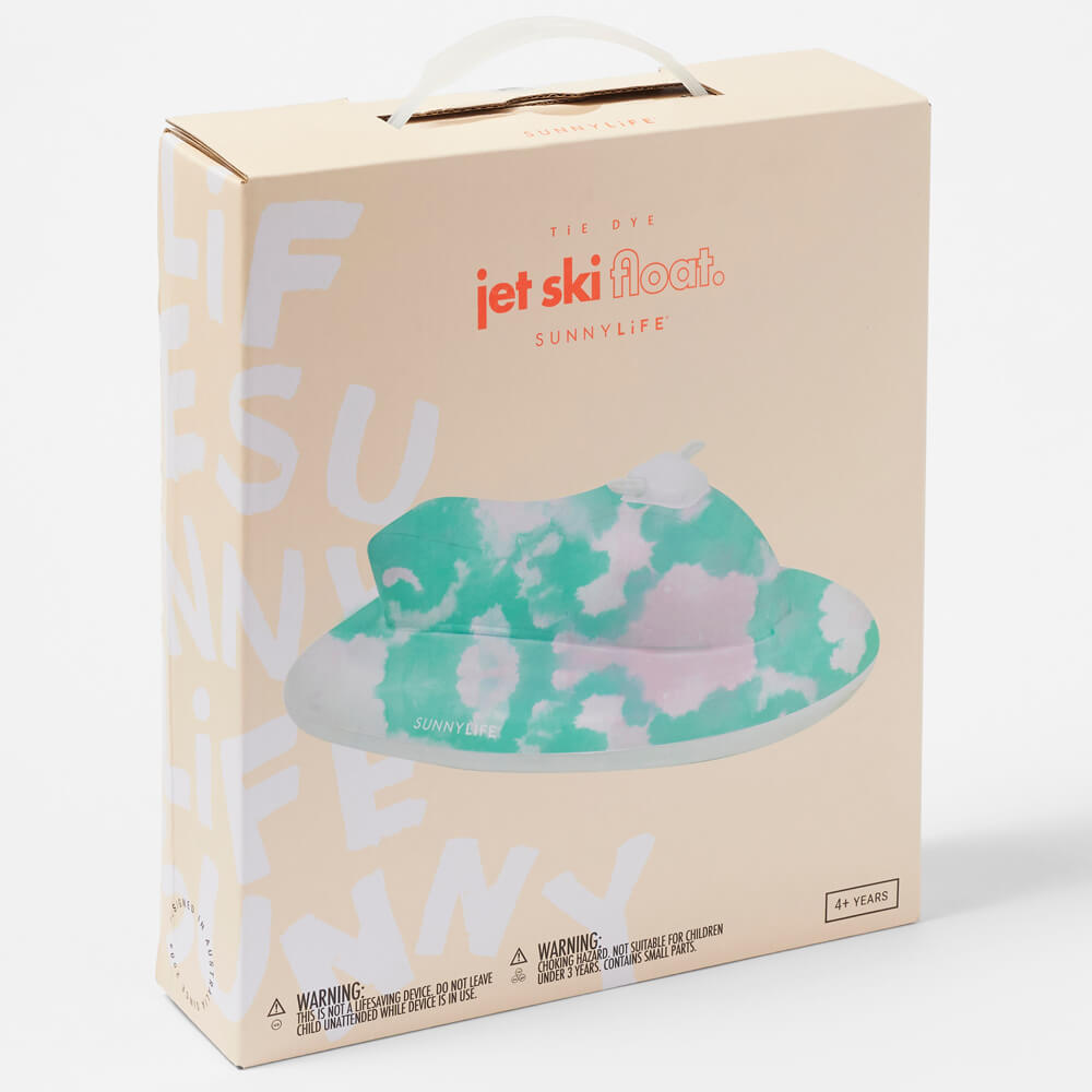 Ride those waves in style with this Jet Ski float from Sunnylife. Finished in a totally cool tie dye pattern, this jet ski-shaped float is ready for fun all summer long.