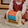 The spinning drum is crafted from beechwood and coated with non-toxic, water-based paints and finishes.