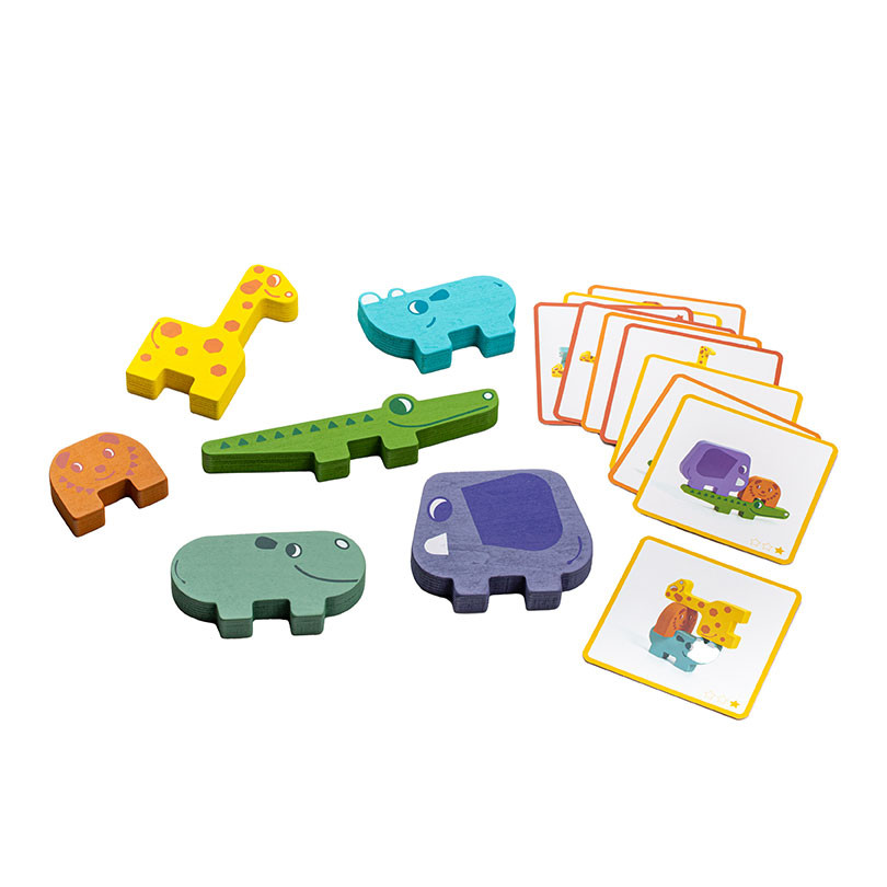 There are 20 different cards to recreate and 6 different wooden animals.